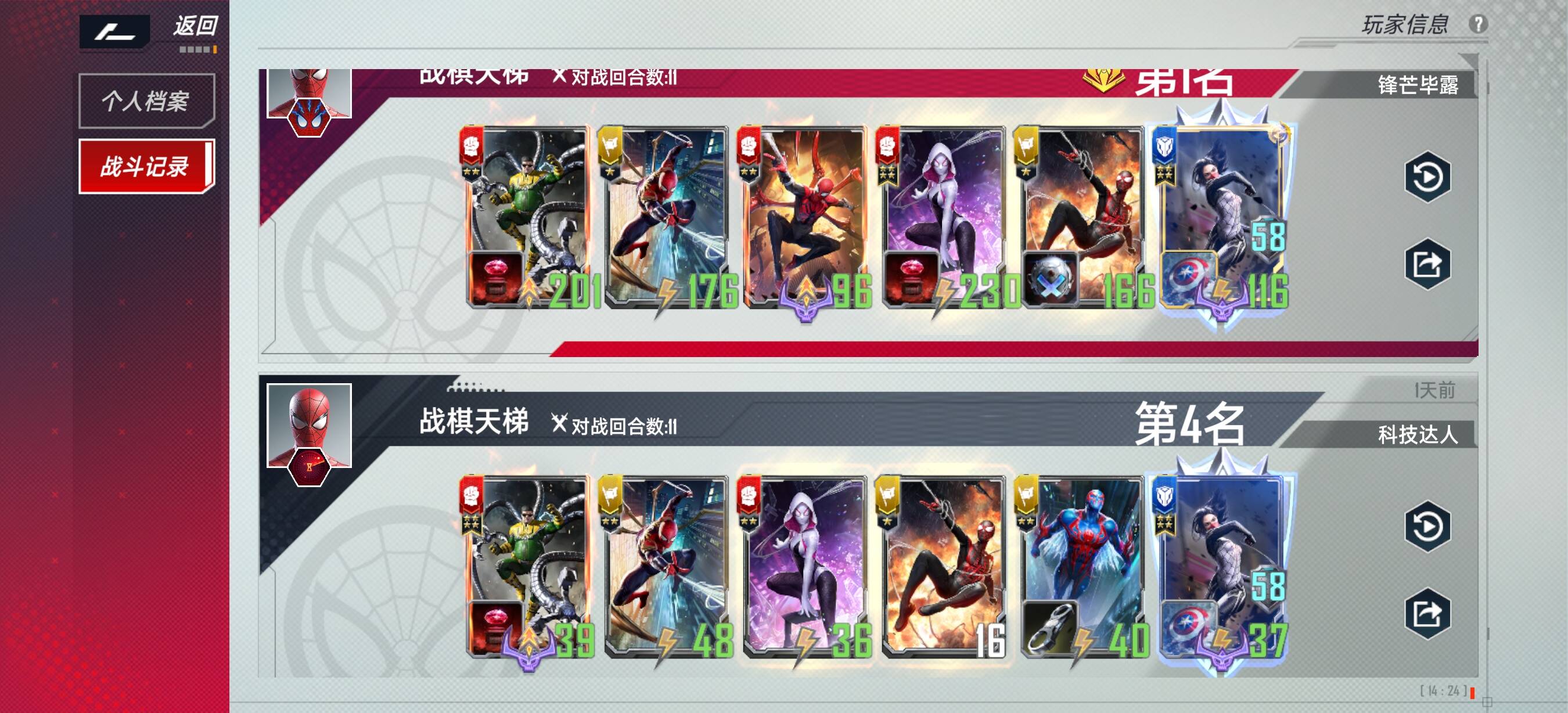 1.2回合拿最高战力,三回合买商店里最能打的,有援军买援军。四回合正常上四,上四主要是搜格温和命网,如果格温来的早56回合两星格温阵容成型建议直接上5找迈尔斯,否则建议四本发育用叶莲娜找命网,命网很大概率找到2099和格温,有就直接拿,格温不来命网是我们活下去的关键。期间可以使用猎鹰连接来稳血,猎鹰养章鱼非常好用。前期碰到春寡直接拿,越早拿提供的价值越高。四本凑齐2星格温或者四张命网就可以上五找迈尔斯了,五本找到迈尔斯直接上6找蜘蛛感应,这个时候的阵容应该是章鱼 格温 迈尔斯 蛛丝 剩下两个位置有2090上2099(命网找到的话),另一个位置考虑幻视或者五费蜘蛛侠,幻视的主要作用是防对面蛛丝喷射保一个先手,对手没有蜘蛛侠可以不买,上六就是找蜘蛛感应和木筏手铐,木筏手铐对于后期秒c位非常关键,给几张黄蜘蛛带上去找对面C位。打复联定位幻视,打瑟曦定位瑟曦 因为大多数对手后期都会防蛛丝,所以我们就直接用手铐秒C四星超大章鱼配合迈尔斯没有打不死的C 千攻伊卡也得死,打瑟曦就是秒掉瑟曦,剩下的交给命网,复联我没有遇到过打不过的,狙击鹰队手铐晕幻视用章鱼秒掉,幻视死了基本等于赢了。海拉狼也是靠狙击或者手铐定位秒狼秒海拉都可以(不是四败狼感觉强度比较一般)。镭射眼我没有找到太好的解法,还是尽量手铐定位先杀镭射眼后续靠命网补怪反杀,有点拼运气。还有秘闻卡组,血不是太多的可以拼一拼,决赛大成了建议直接跑。最后遇事不决格温响指。看到星爵记得小防一手尬舞。