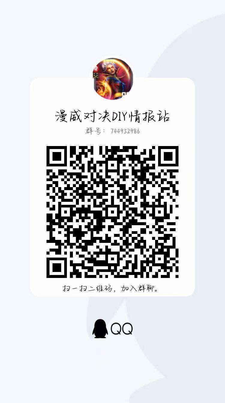 之后我也会尝试邀请桐麟小哥哥在b站对本卡组进行分析解说哦,感兴趣的可以关注下。当然也可以进群与我们交流,群号744952986,随时获取一手消息和活动,我和其他的DIY小伙伴们都在群里等着你们哦!最后希望大家多多支持【漫威对决DIY情报站】,顺便希望大家更多的加入到DIY大家庭,一起让游戏越来越好哦~