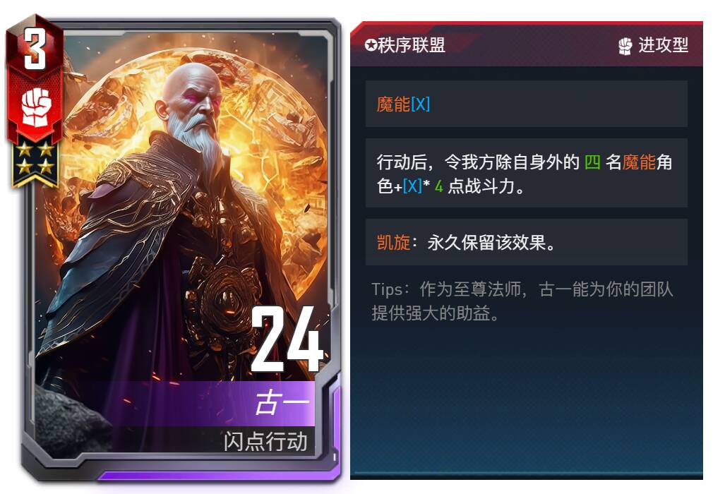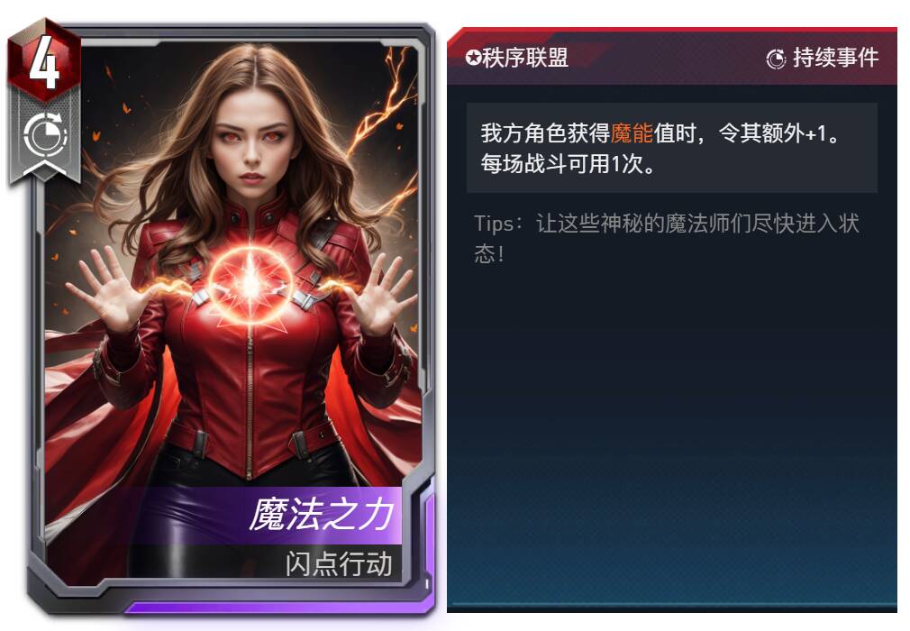魔能:自身首次行动后,获得1点魔能值,场上所有拥有魔能词条的角色共享魔能值。