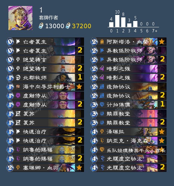 - 宇宙牧(1,8,96,255)两个卡组牛牛里都是纳鲁碎片,亡者复生,炽燃圣光
