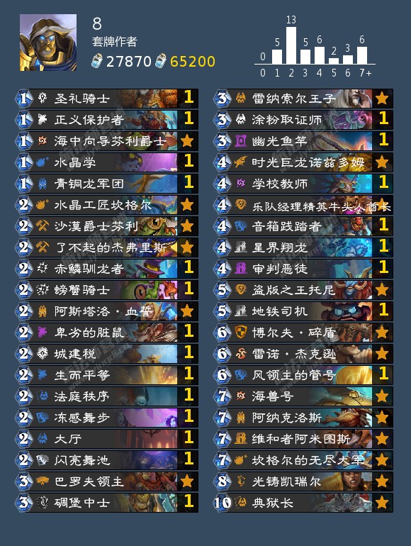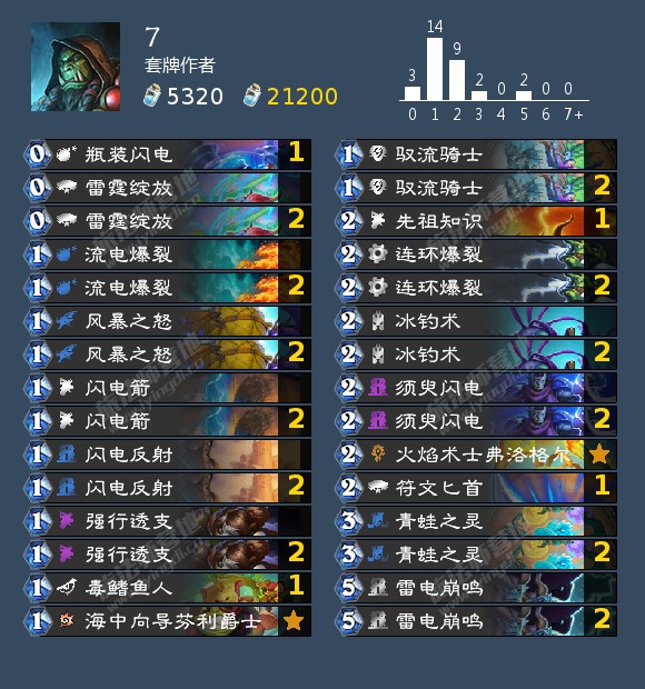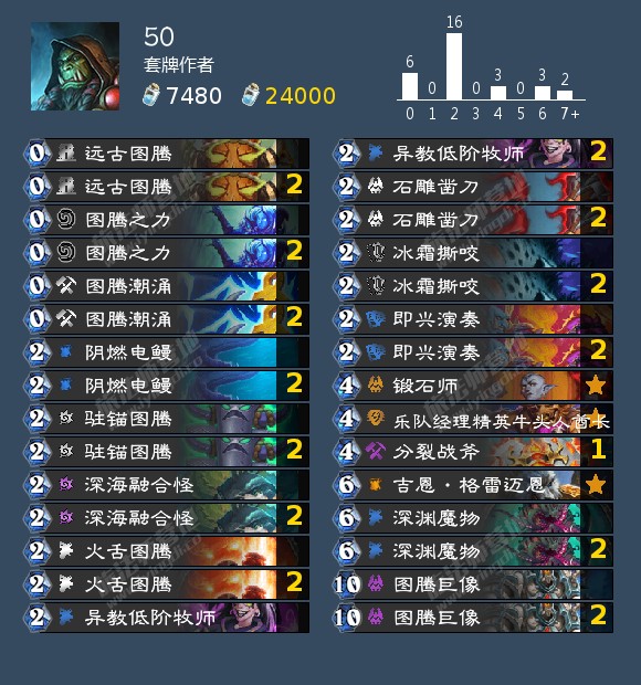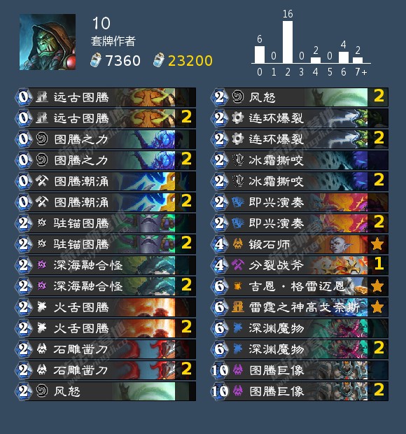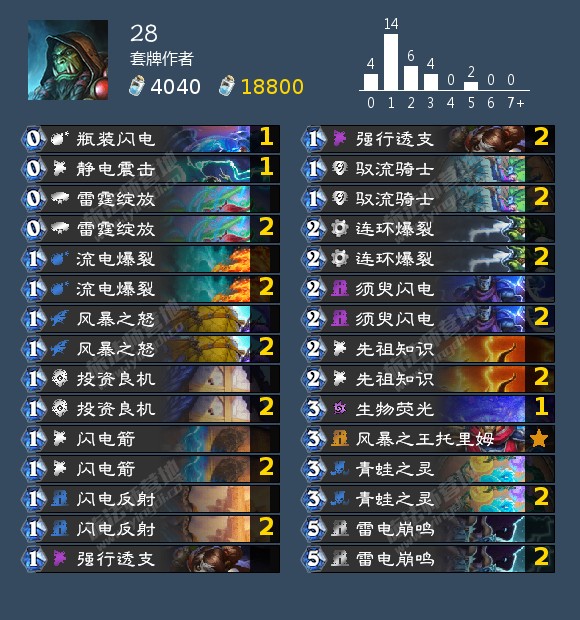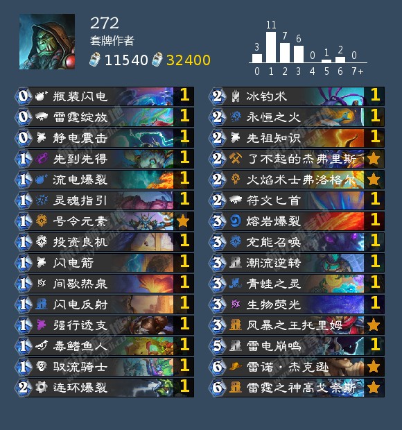 萨满(偶数萨*4,战吼萨*2,过载萨*7,宇宙过载萨*1)