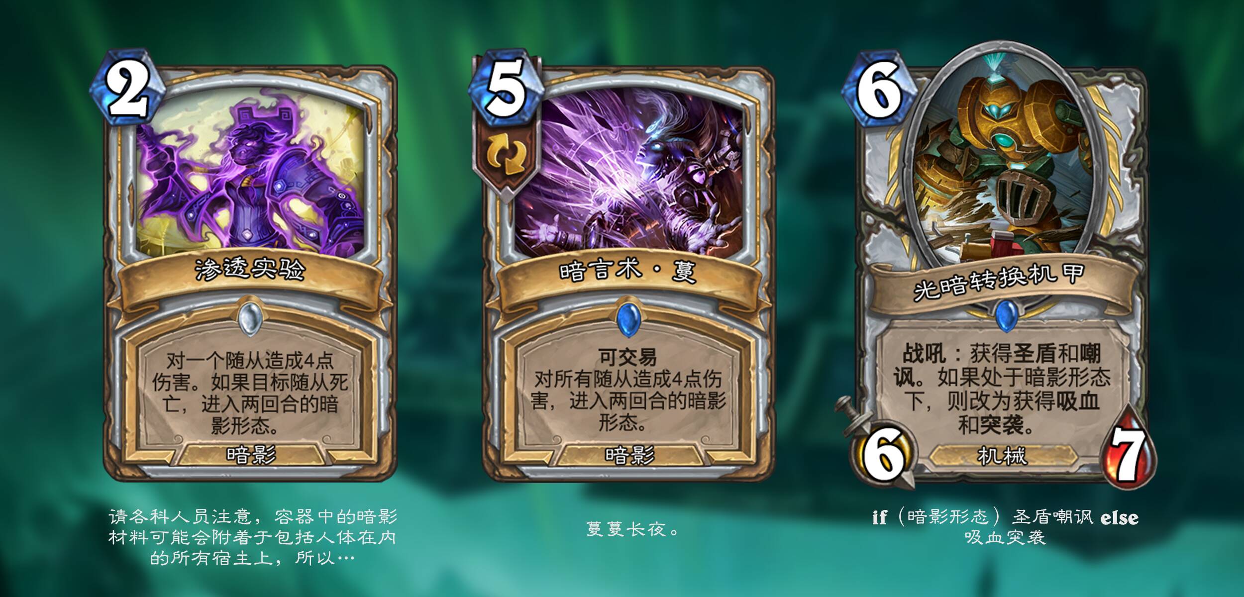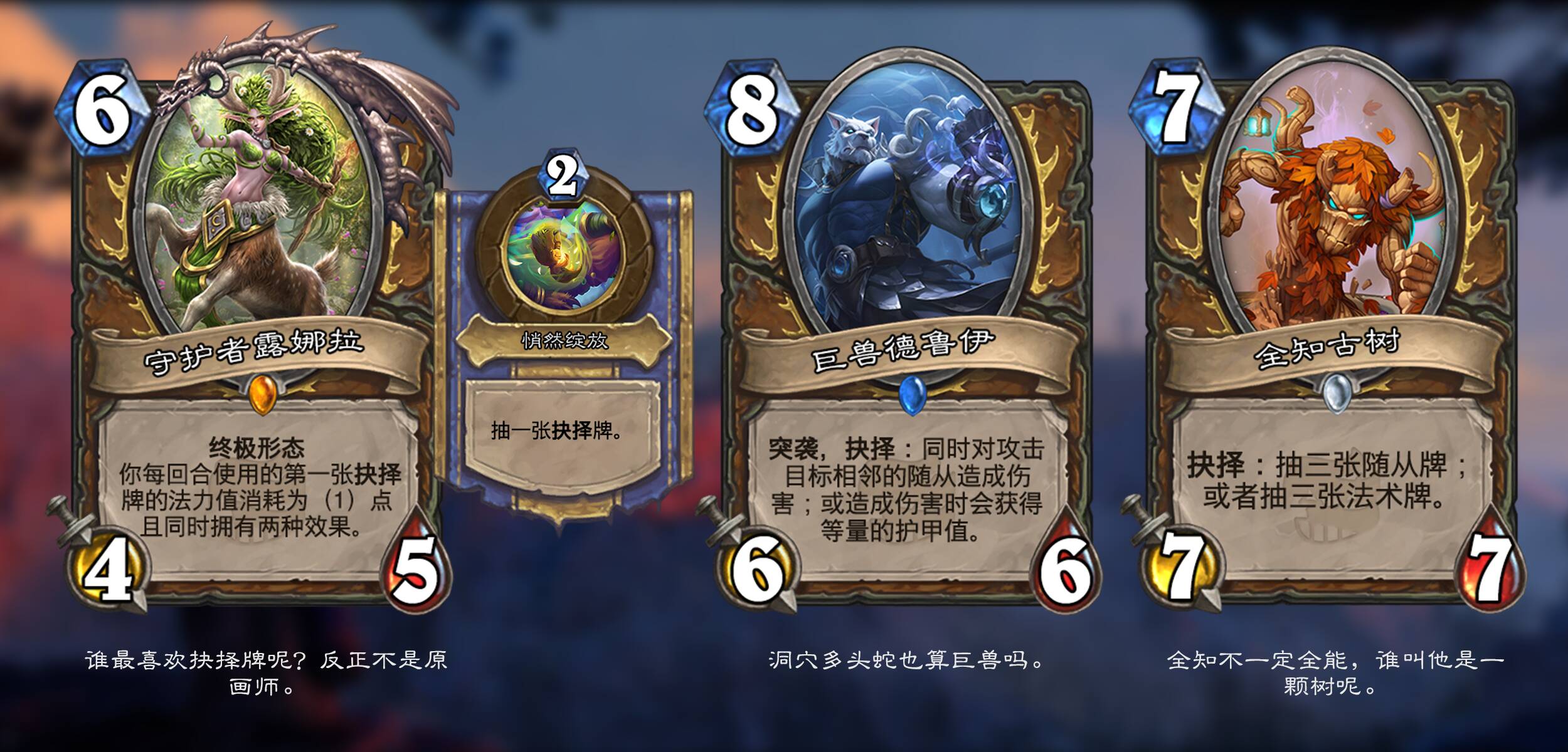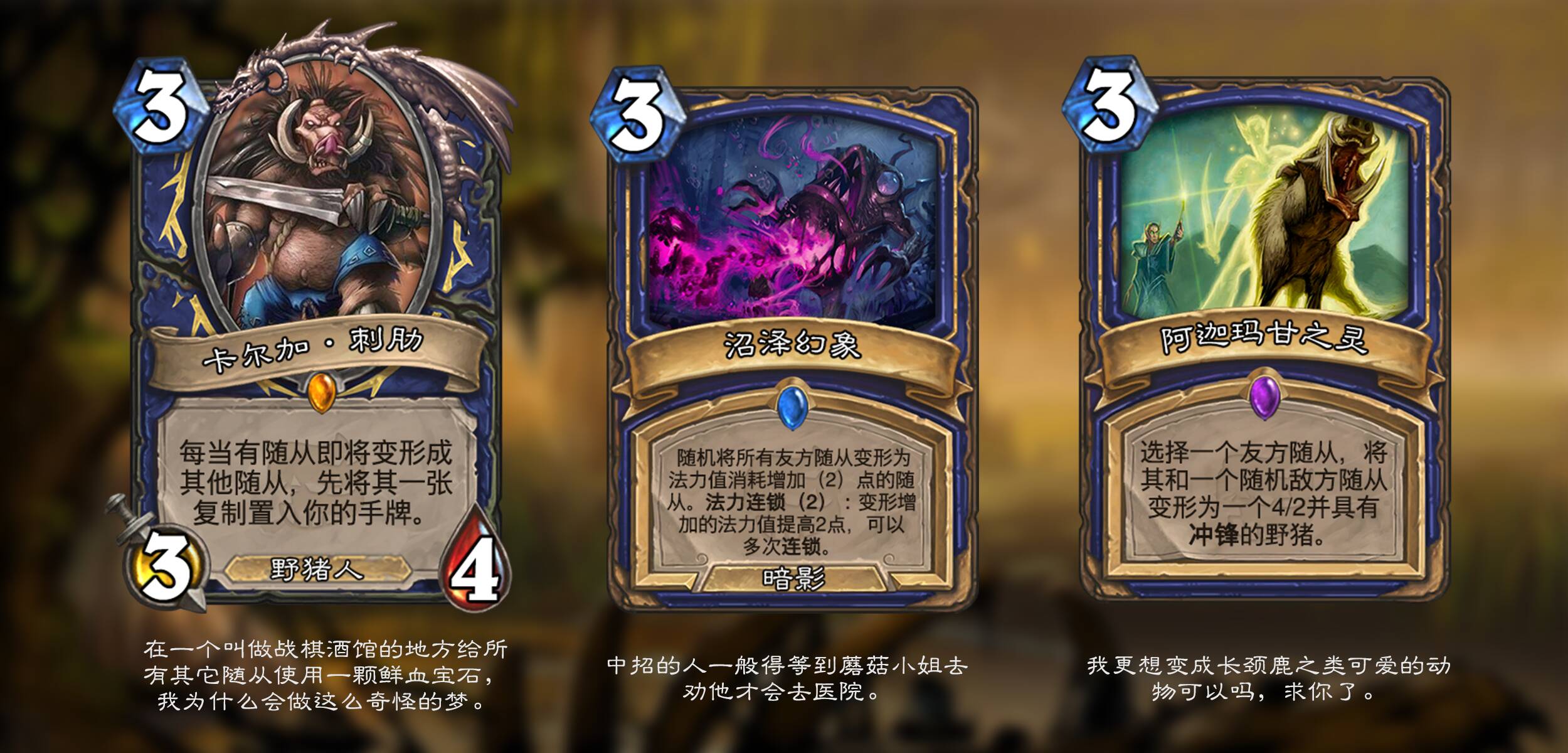 很久没在营地发贴了。本次拓展包背景纯属基于魔兽世界观的乱写拓展,部分属于恶搞玩梗,和正史无关,非魔兽玩家,不严谨的地方欢迎指正;个人diy风格向来偏向实用主义,主要推体系卡,各种评价是认可的;此外预览季印卡难免撞车,不过为了风味保留了这些卡;为了模仿预览季发体系卡的感觉,已经根据个人喜好对体系卡进行排序;由于是先画靶再射箭,部分原画选择使用AI绘制。希望各位都能有愉快的阅读体验。