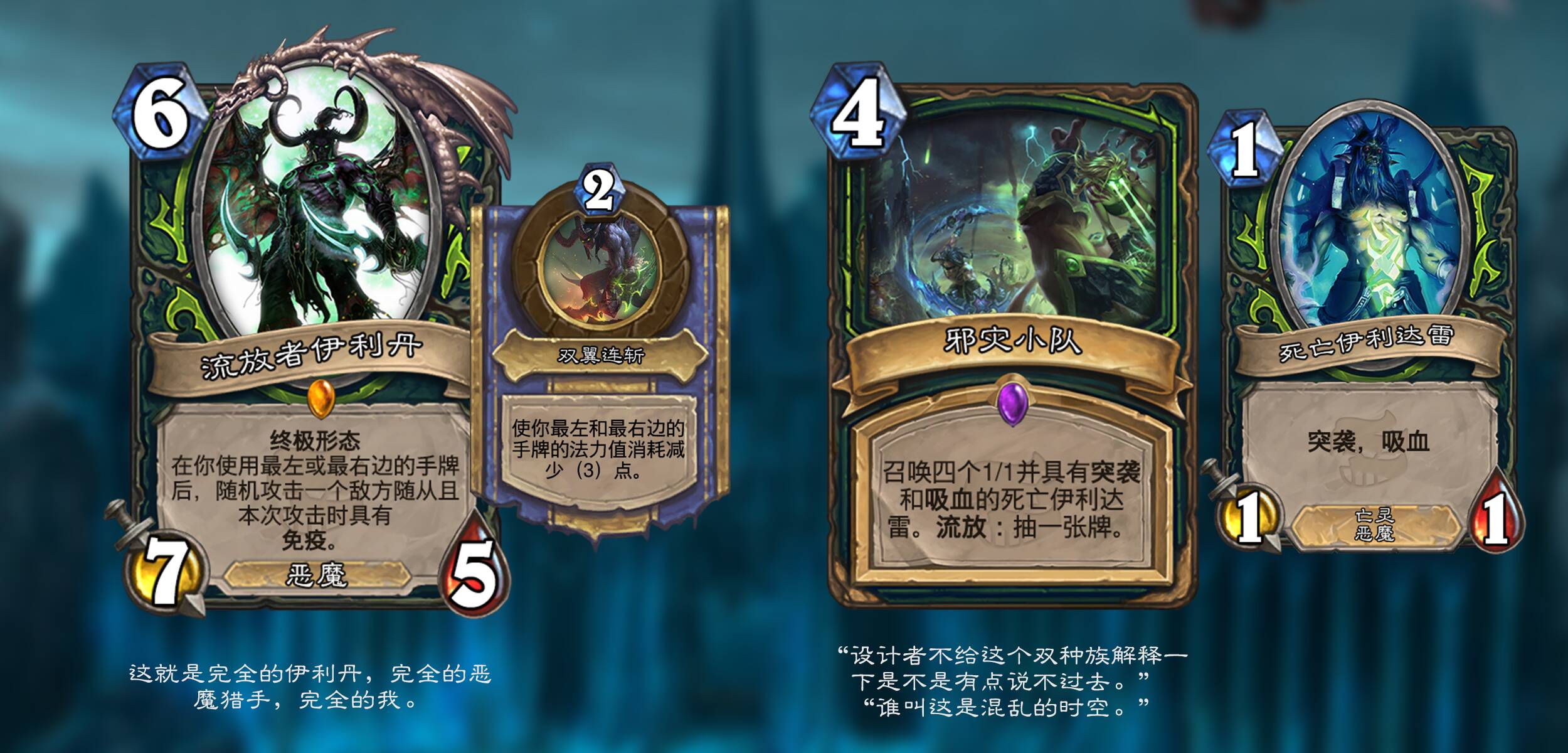 在这混乱的时空中,伊利丹成为了与阿尔萨斯决斗的胜者,如愿坐上了巫妖王的宝座,占据了冰冠堡垒并将天灾军团改名邪灾军团。只是,他这个宝座坐得小心翼翼,因为阿尔萨斯也在酝酿着他的复仇……