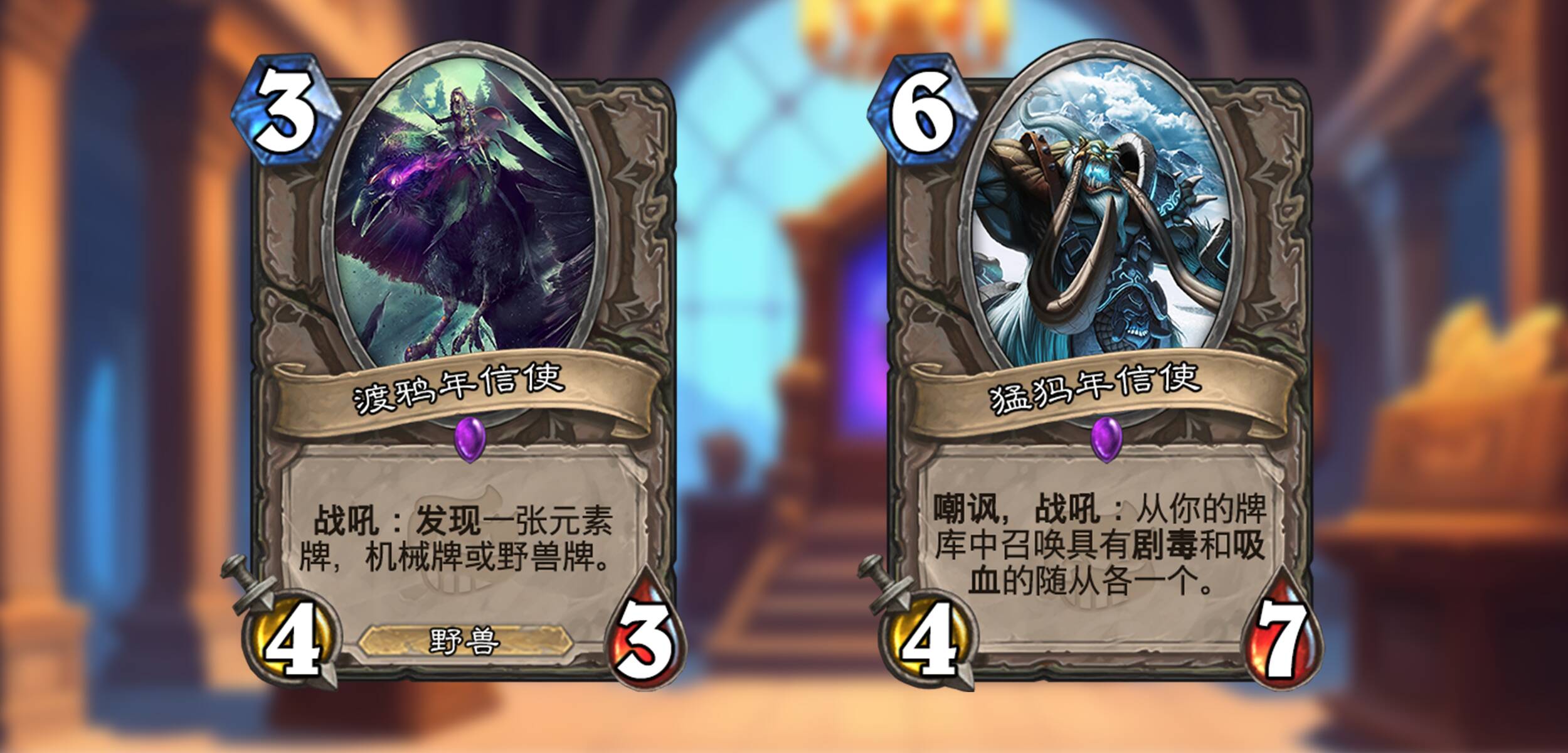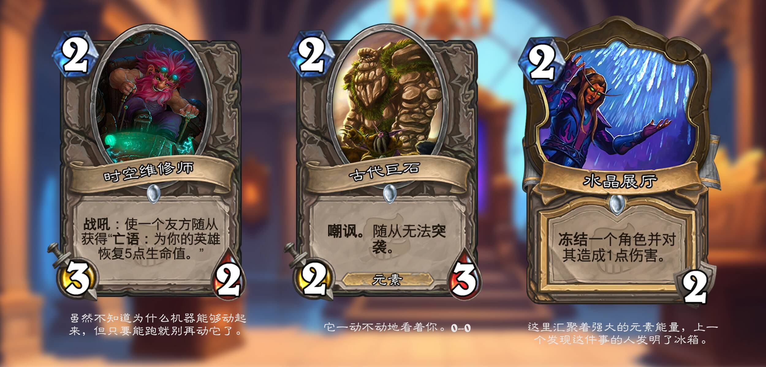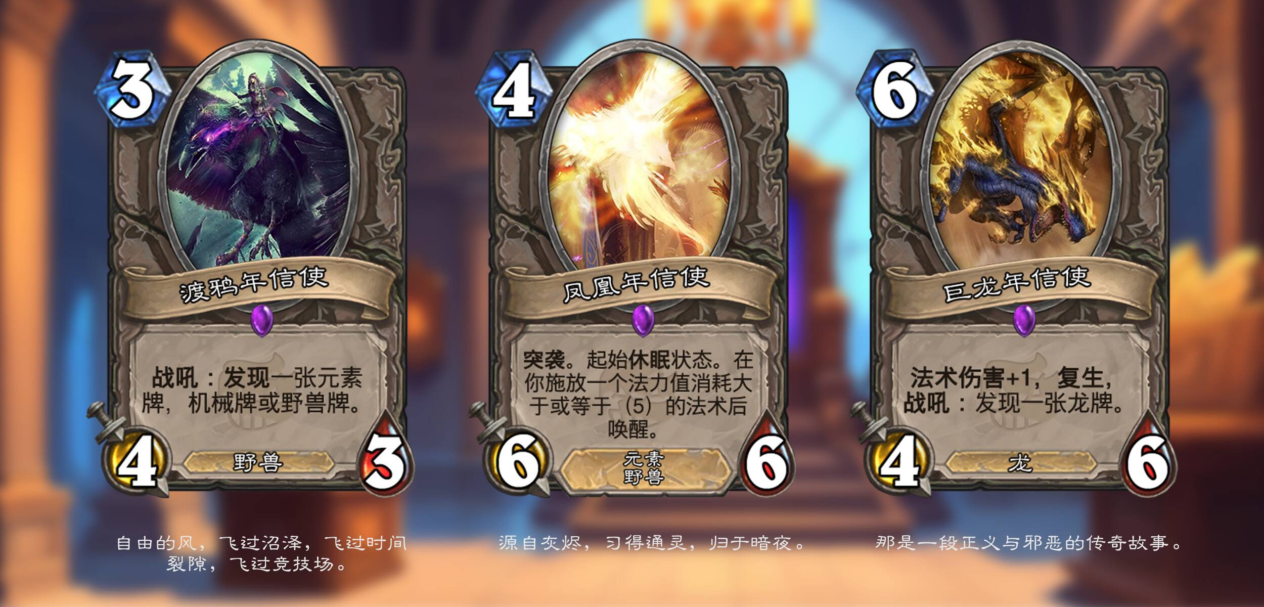 炉石传说也在时间线上留下了浓墨重彩的一笔。在本次拓展包中,“信使”系列卡牌如约而至,他们代表了炉石传说历史的某一年份,拥有与其代表年份中的所有拓展包的设计风味。