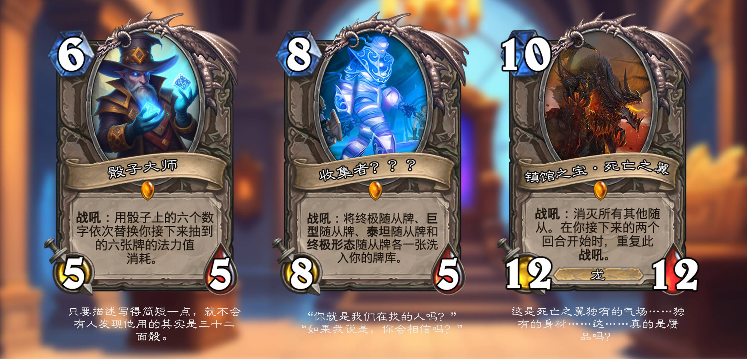 *骰子大师:风味描述,正常描述是“将你接下来抽到的六张牌的法力值消耗变为1-6点”