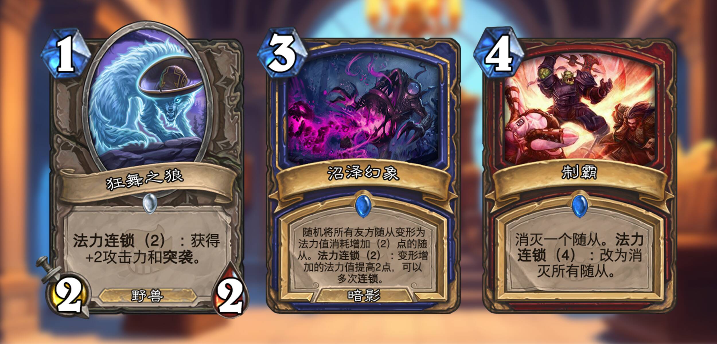 卡牌的形态千变万化,要想解锁这些混乱中的卡牌的额外效果,就需要额外的法力值。使用法力连锁卡牌时,如果你有与其要求匹配的足够的剩余法力值,则要求消耗这些额外的法力值以强化卡牌的效果。