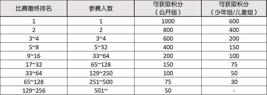 ※可获取的积分依据当场比赛的实际参赛人数及比赛最终排名来决定。