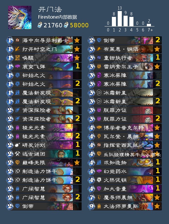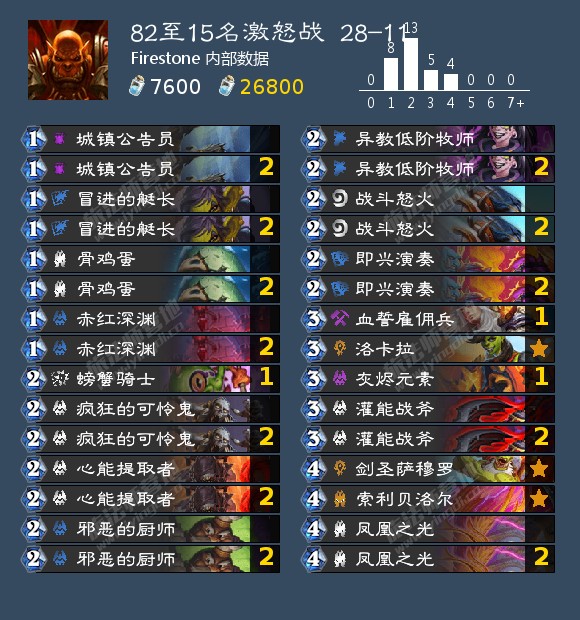Firestone的统计数据,18名到第6名,带上新卡的开门法,20-11