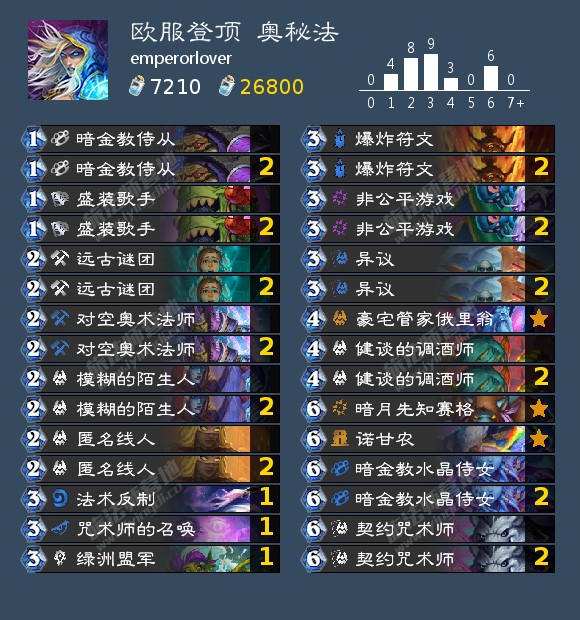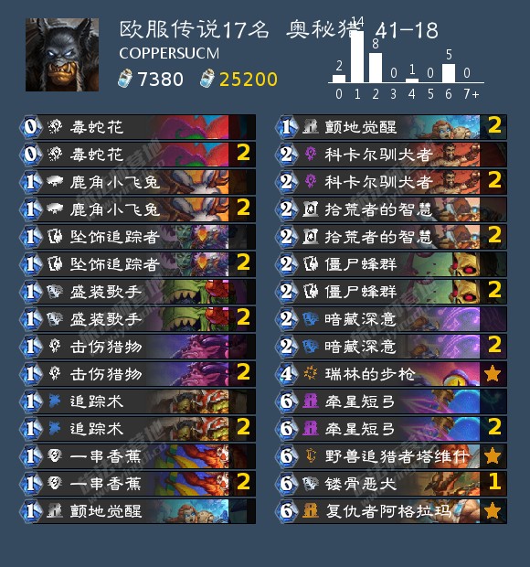 4. 如果是天梯的爬分卡组,要求是各服排名前200(因为外服人少,所以排名要求会比较高),场次不能低于20场,胜率不能是负的。
