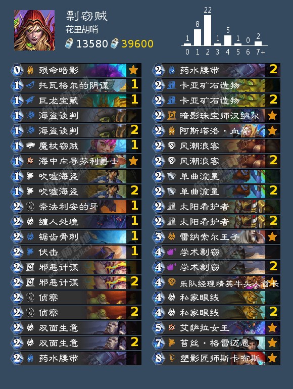自己玩的剽窃贼,还算好用,魔杖窃贼等剽窃卡,奈法利安的牙,锯齿骨刺这种解场卡都是看自己喜好换