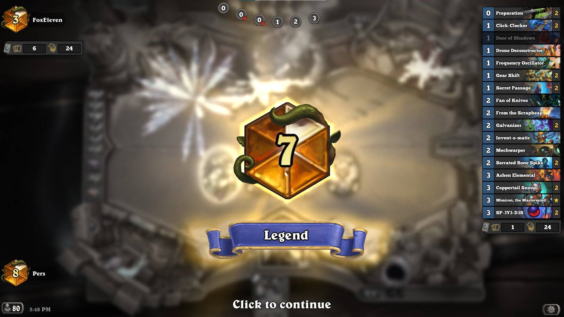 更新了卡组,去除了整备站,尝试改进了法术卡位。刀扇有助于对抗海盗快攻卡组,带灰烬元素是因为我无法忍受这些开门法了。