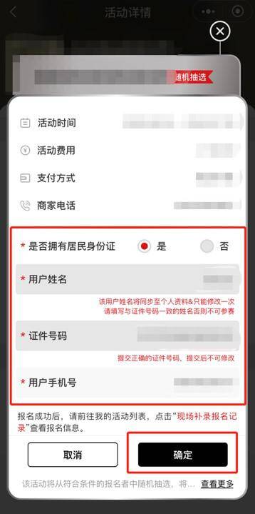 3.进入报名界面,根据实际情况填写所需身份信息,确认无误后点击确定。