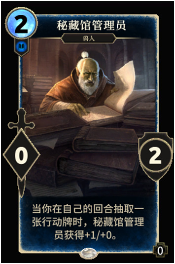此卡的汉化翻译是错误的,此卡的效果其实是“当你在自己回合抽一张牌时,秘藏管理员获得+1/+0”