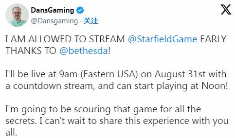 购买《星空》高级版和星座版的玩家可以于9月1日抢先体验游戏。与此同时,B社允许有合作的主播提前8小时进行直播。