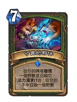 猎人有奥术和野兽两个形态要削弱。哈杜伦这张牌我们之前为了让奥术猎崛起是加强过的,我们对那次的效果改动是满意的,那就通过调整数值来控制强度。至于野兽猎,我们希望削弱的是这套牌的前期和后期爆发,可靠伙伴的这种改动方式应该能够在降低其终结能力的同时使其能够沿着另一条主轴运营,让后期抉择更有趣。