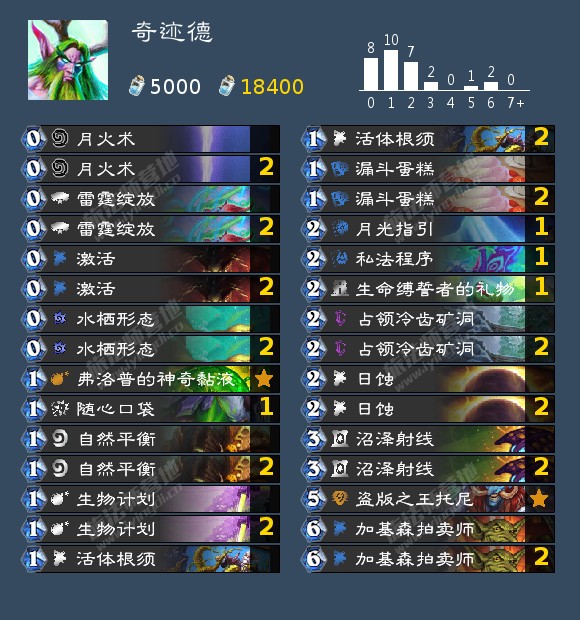 今日的卡组有: 奇迹德,野兽猎,宇宙暗牧,弑君贼,红龙贼,克苏恩贼,任务过载萨,战吼萨,弃牌术,任务弃牌术,快乐术,气宗任务术,40防战,偶数战