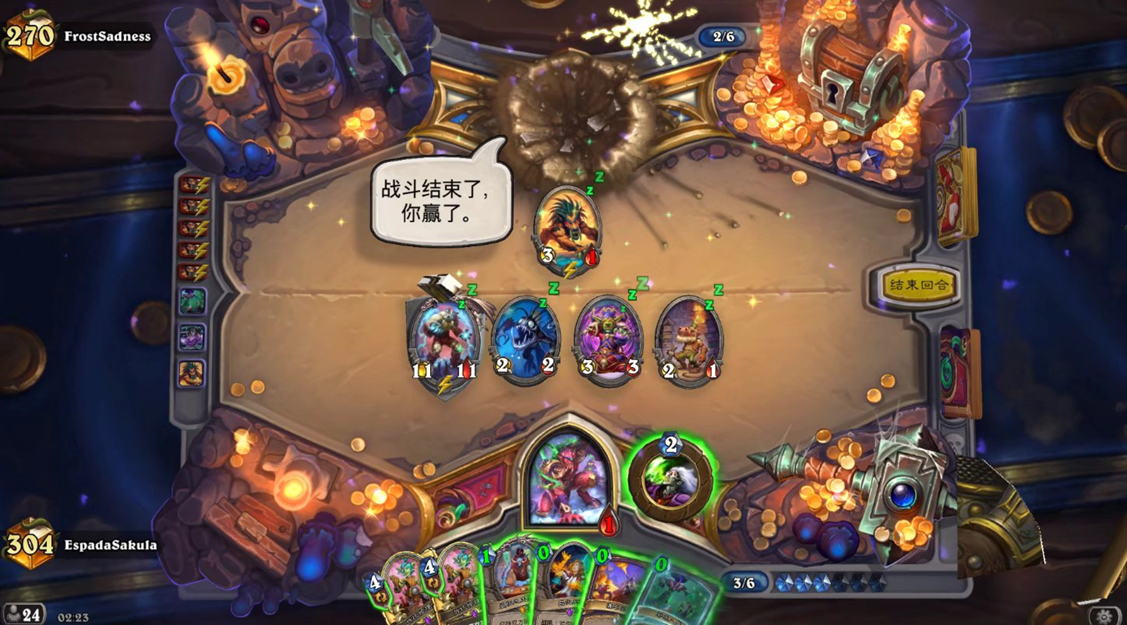 下附一个狂野天梯对战奥秘法的斩杀截图