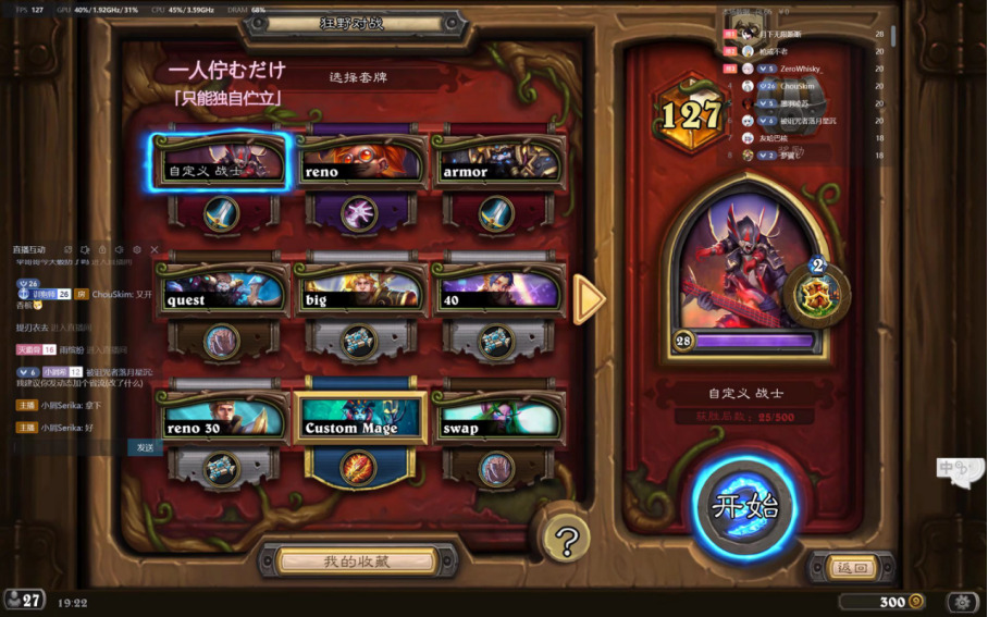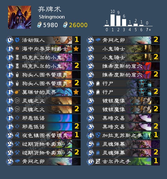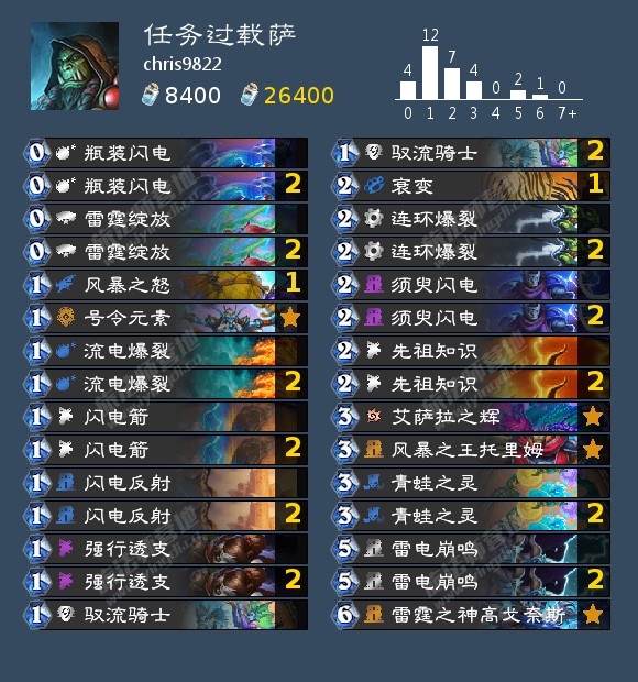 后面穿插着几把过载萨,弃牌术构筑改动过多次,也不固定,还是那些比较传统的构筑