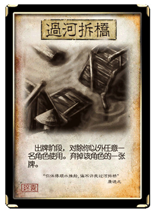 普通玩家在拿到过拆的时候,只要敌人的区域里有牌,都会直接用掉。高手玩家则会判断场上的形势会留着拆对面的关键牌,比如+1马或者防具。一般来说在对面手牌较多,且装备区无牌的时候,过拆都要留着,因为用了也没有多大价值。用过拆来拆对面手牌的话,除非是让对方空城,或者准备打击杀碰运气拆对面的桃,否则纯粹拆一张手牌根本发挥不了太大的价值。除了对敌人使用以外,过拆用在队友身上也很关键,比如队友被兵乐的时候,这张牌是很有必要用到队友身上的。