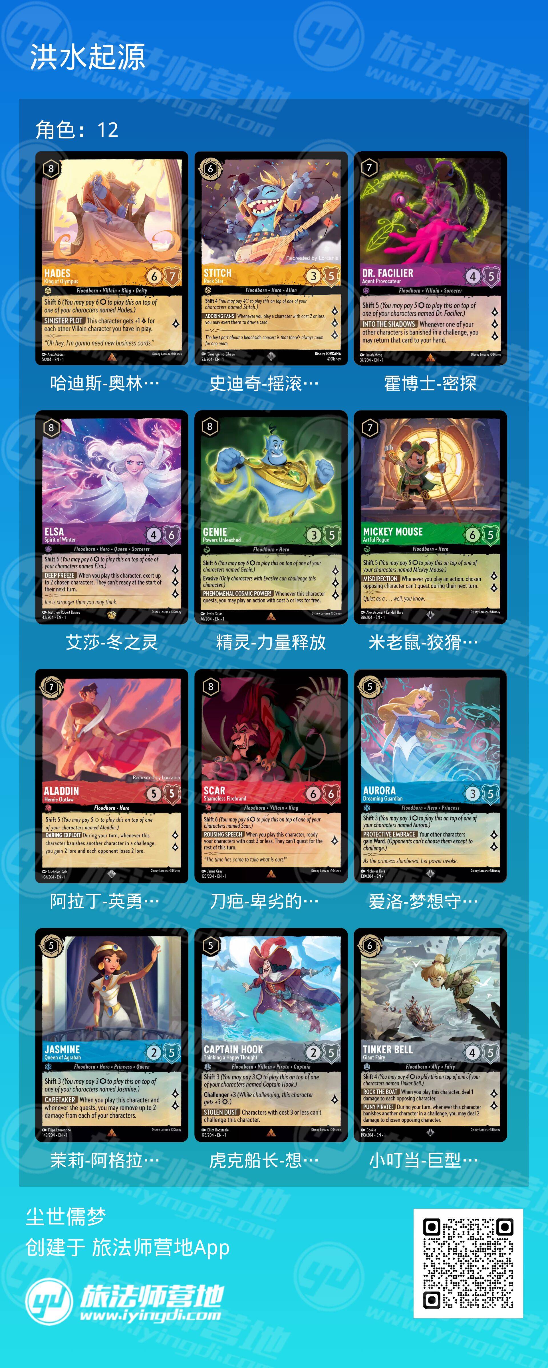 此前,在迪士尼Lorcana第一章中,共计有12张洪水起源角色,本次的第二章中很有可能是对洪水起源进行体系强化。