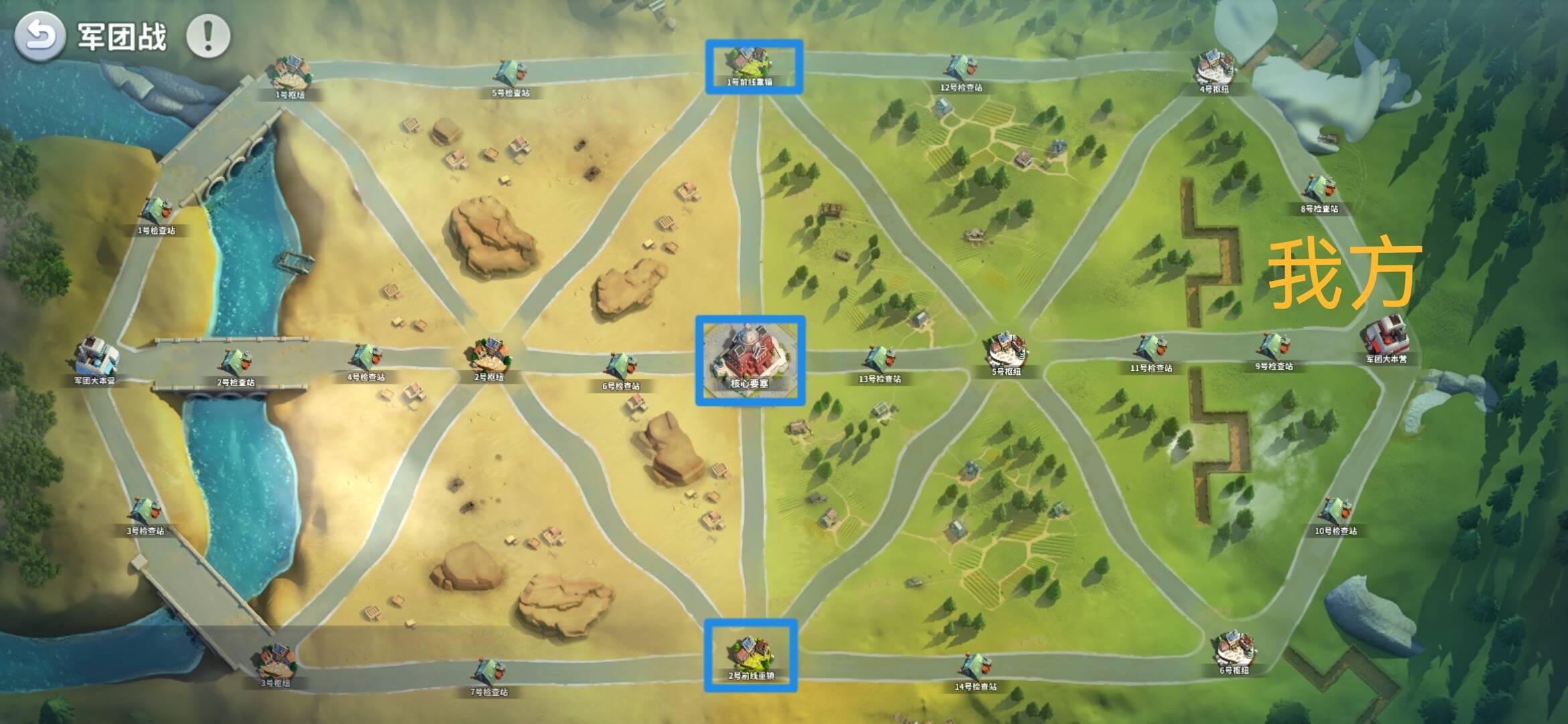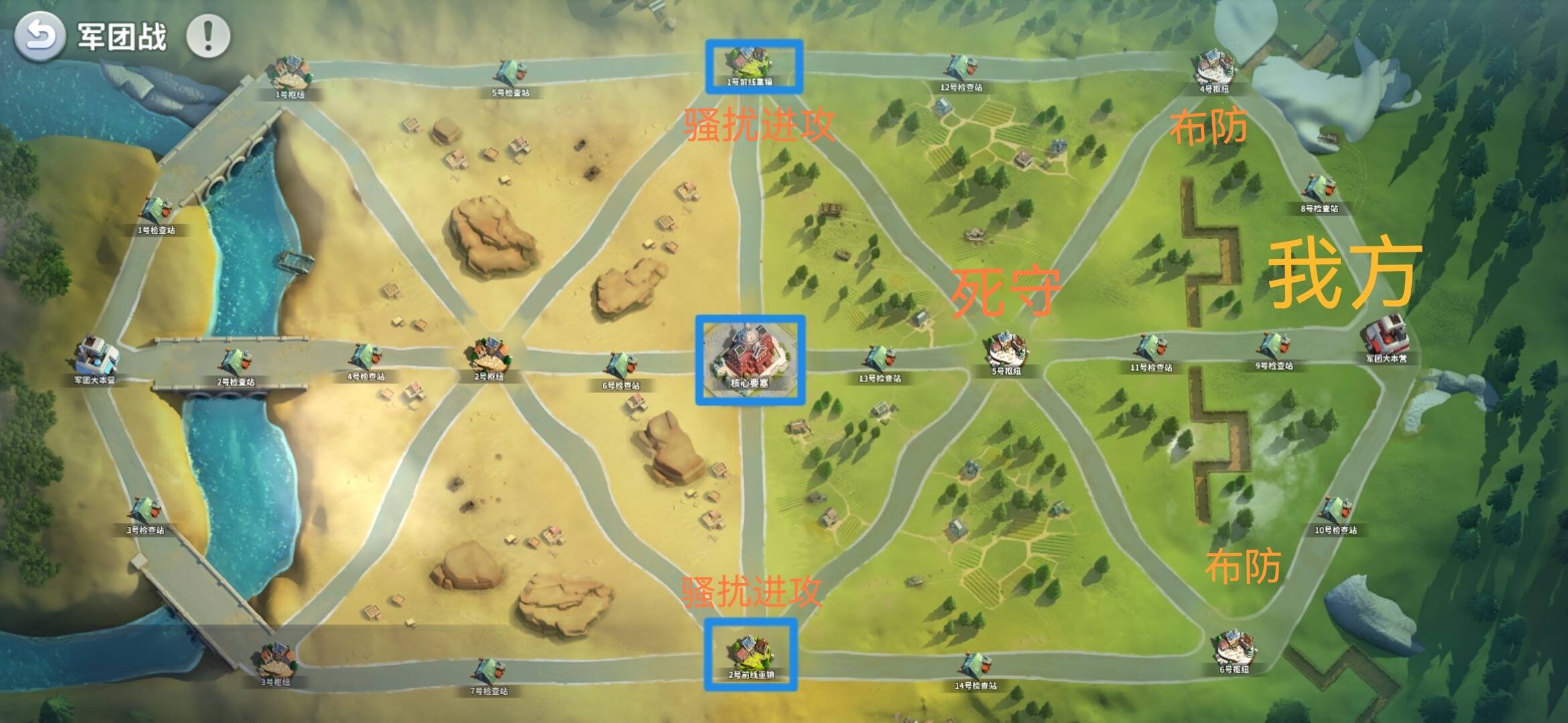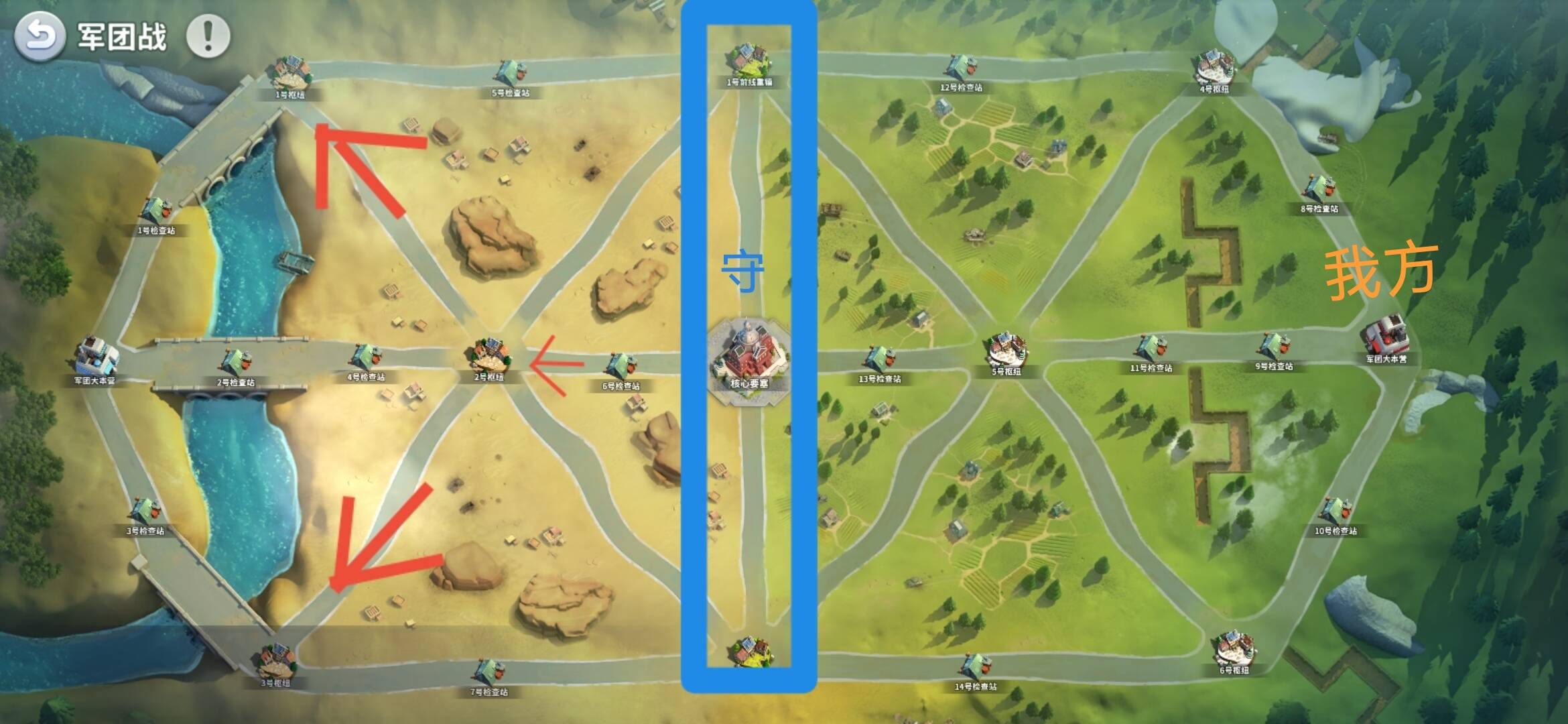 提前准备3-6个手速快的安排在前线据点驻守,然后他们取消驻守抢中心的三个据点,太多人去的话浪费行动力,注意下,抢到就有五分钟保护期,可以建立初期优势。