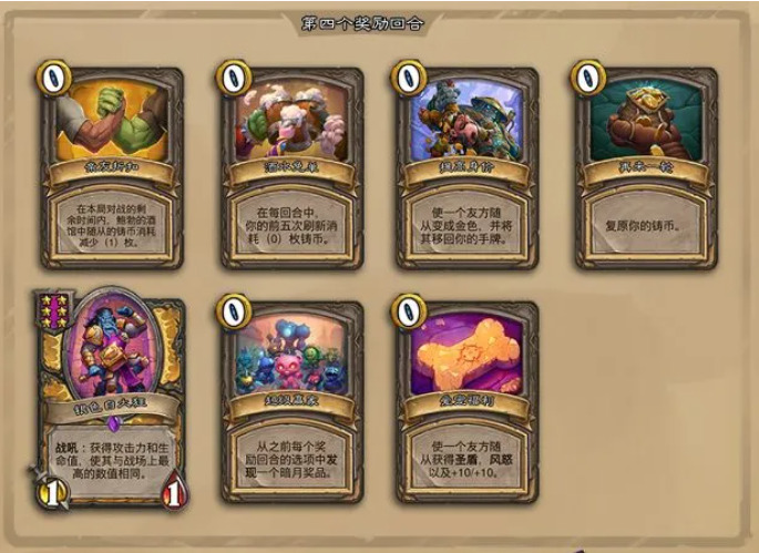 次选复原铸币,因为第一回合不一定能转起来,复原铸币就相当于让我们多了10块钱,然后就是5次刷新,等级4的第一个回合我们并没有足够的经济资源开始倒转,所以经济类奖励至关重要,如果都没有我们只能选发现之前的奖励了,全拿经济类或者6本怪(有6本对子或者上将瞎眼的局)