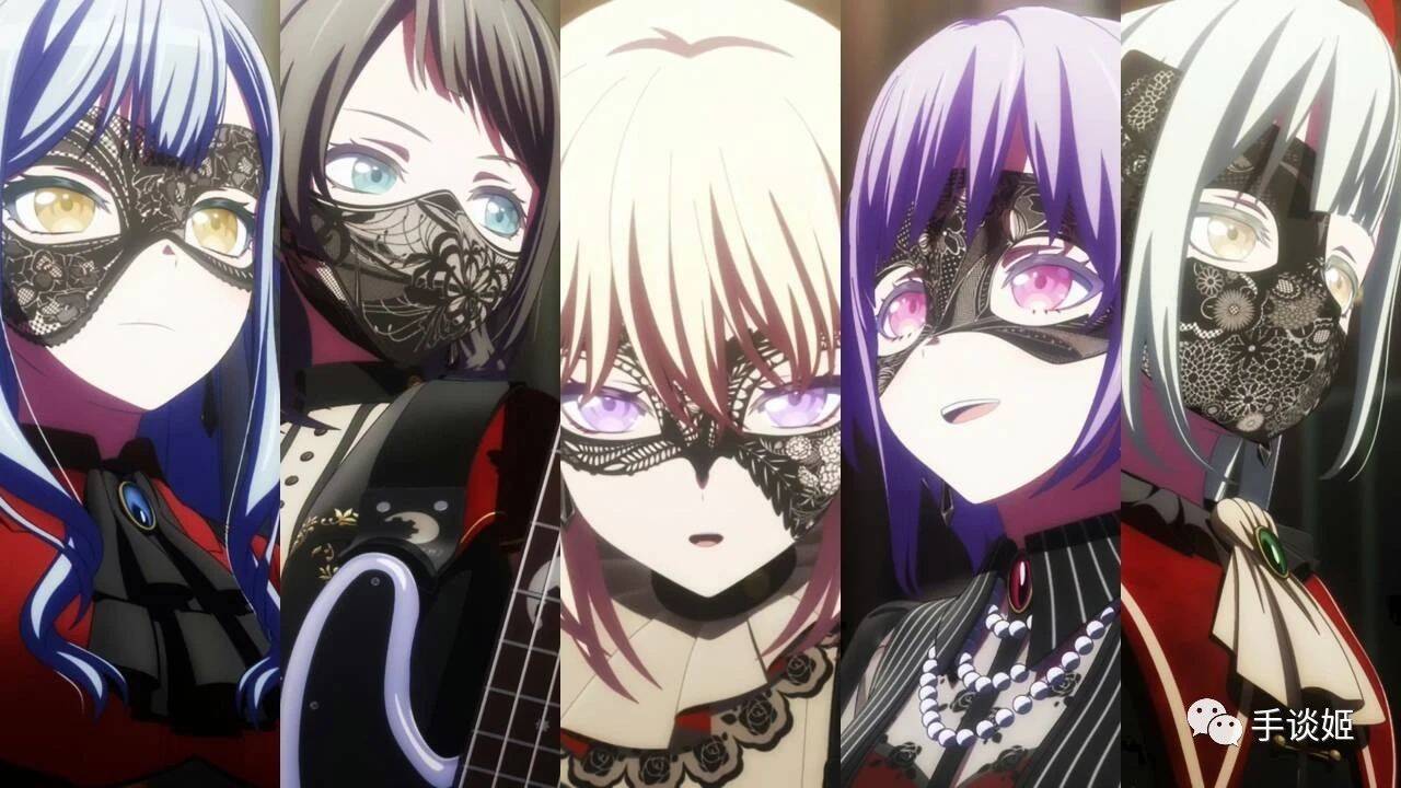 首先要解释一下,“内裤套头”指的是覆面乐队Ave Mujica,因为她们每个人脸上都戴着黑色蕾丝面罩,和一些高档内衣店所售卖的决胜服装相似,故被动画观众戏称为“内裤套头”,其实是面罩啦,面罩。