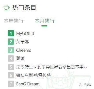 如何证明这部动画的含金量?就拿萌娘百科举例子,在热门条目榜单上,mygo位居第一,《原神》的水神芙宁娜位居第二!邦大于原,时下热门词来形容,那就是:遥遥领先!