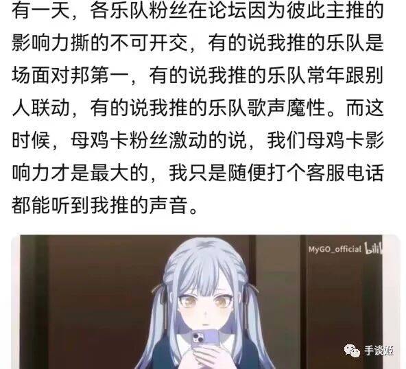 但观众们确实会感到疯狂,口中会喊“我现在就要看到续作!急急急!”之类的话。所以,这次手谈姬是想聊聊刚完结的《mygo》动画。