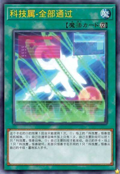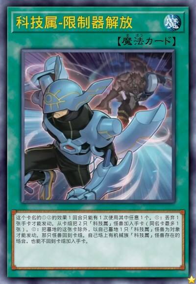 ①:丢弃1张手卡才能发动。从卡组把2只「科技属」怪兽加入手卡(同名卡最多1张)。
