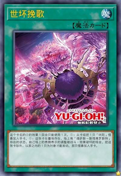 ②:这张卡在墓地存在,场上有「维萨斯-斯塔弗罗斯特」存在的状态,自己场上的表侧表示的调整被战斗·效果破坏的场合,把这张卡除外,以那之内的1只为对象才能发动。那只怪兽加入手卡。
