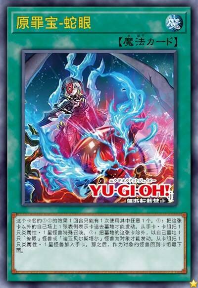 ②:把墓地的这张卡除外,以自己墓地1只「蛇眼」怪兽或「迪亚贝尔斯塔尔」怪兽为对象才能发动。从卡组把1只炎属性·1星怪兽加入手卡。那之后,作为对象的怪兽回到卡组最下面。