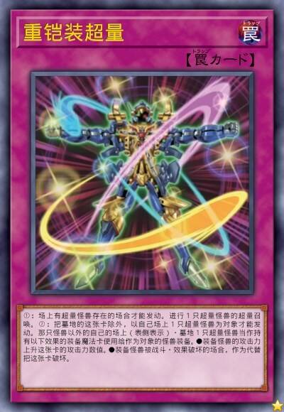 ①:从自己的卡组·墓地把1张「铠装超量」卡加入手卡。那之后,可以选自己场上最多2只表侧表示怪兽那些等级直到回合结束时全部变成3星或者全部变成5星。