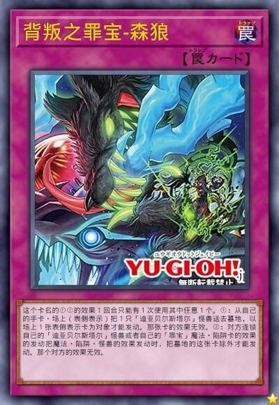 ②:对方连锁自己的「迪亚贝尔斯塔尔」怪兽或者自己的「罪宝」魔法·陷阱卡的效果的发动把魔法·陷阱·怪兽的效果发动时,把墓地的这张卡除外才能发动。那个对方的效果无效。