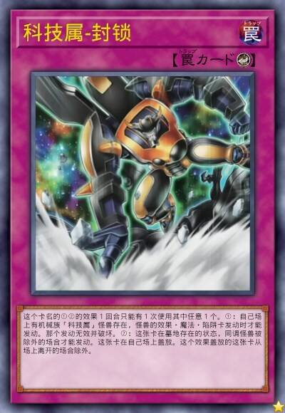 ①:自己场上有机械族「科技属」怪兽存在,怪兽的效果·魔法·陷阱卡发动时才能发动。那个发动无效并破坏。