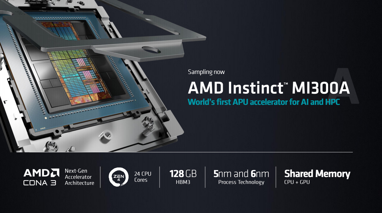 其中,MI300A是全球首款面向HPC、AI的APU加速器,基于AMD的成熟经验,开创了CPU、GPU合体加速的先河。
