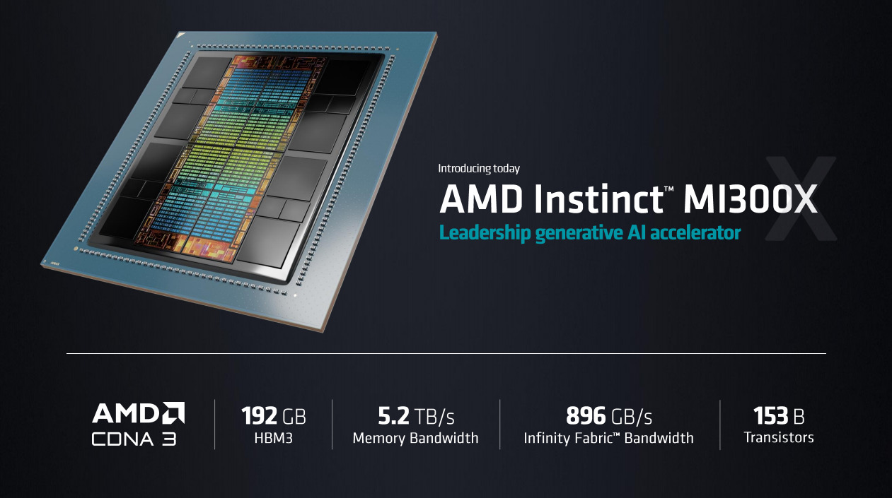 作为对比,NVIDIA最新的H100加速器也只有800亿个晶体管,只有MI300X的一半多点,不在一个层级上。