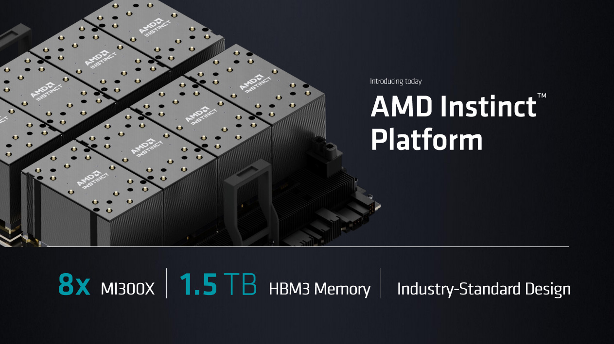 为方便客户部署,AMD全新设计了Instinct平台,基于行业标准的OCP计算标准,单系统可集成最多八块OAM形态的MI300X,HBM3内存总容量达1.5TB。