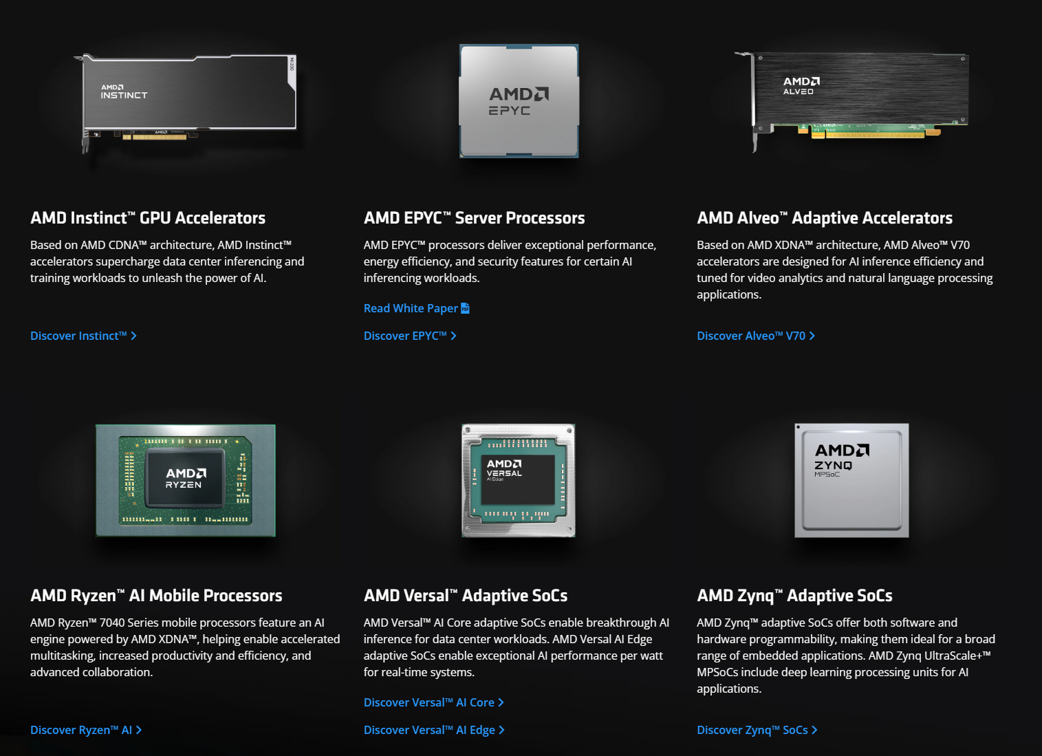 最后,AMD Instinct还有一个任何对手都无法匹及的优势,那就可以是背靠完整的AI产品矩阵,提供一整套一站式解决方案。