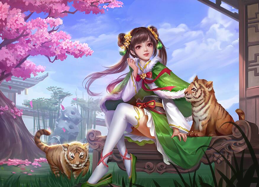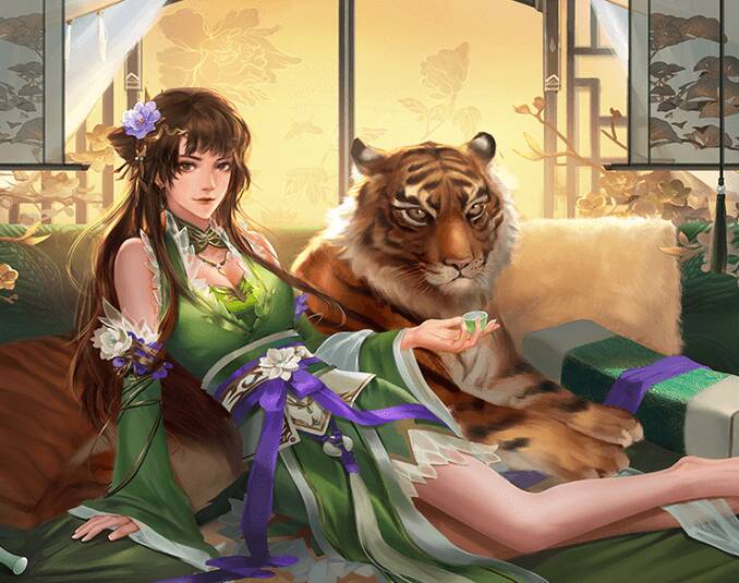 第三个虎将就是孙鲁班,她也是孙权的女儿,是孙鲁育的姐姐。她的很多画像中都有老虎。据了解孙鲁班历史上曾权倾朝野,手段狠辣,甚至不惜对自己的兄弟姐妹下手,真如老虎一样嗜血,不知道画师是不是像表达这个意思。