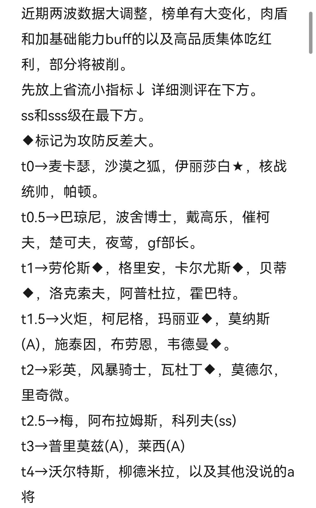 测评大方向为常规对战,部分将领竞技场强度仅在测评简介提一嘴。