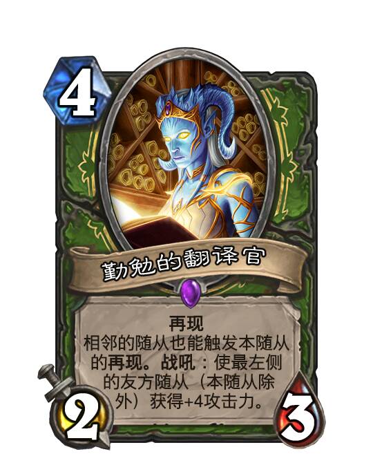②再现:在消灭随从后,获得一张法力值消耗为(0)且不具有再现的临时原始复制。
