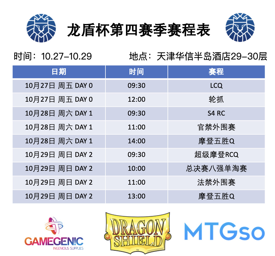金秋十月我们将迎来龙盾杯万智牌中国公开赛第四赛季的决赛。同前几赛季的决赛一样,这同样是完整的三天赛程,无论您是否拥有决赛参赛资格,您都可以参与其中。