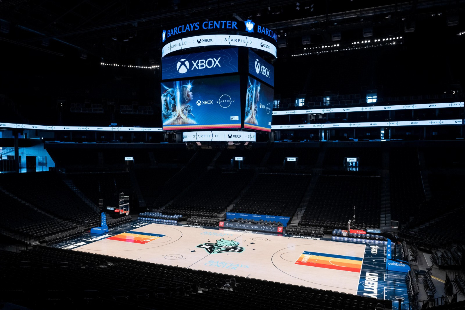 美国女子职业篮球赛WNBA纽约自由人队宣布与Xbox合作,打造《星空》主题球场,该设计应用于巴克莱中心球场,其中在三秒区上采用了《星空》标志性的彩虹色,中场线附近印上了《星空》的游戏LOGO。该场地将用于今天对阵洛杉矶火花队的比赛,以及9月10日对战华盛顿神秘人队的比赛。