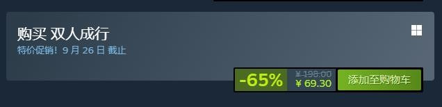 EA在Steam上开启了九月游戏展特惠促销活动,其中包括了2021年TGA年度游戏《双人成行》,国区-65%折后价69.3元,达到新史低,优惠截止到9月26日。