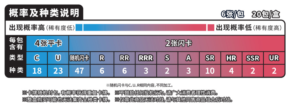 单包商品内容:内含6张卡牌(包含2张闪卡)