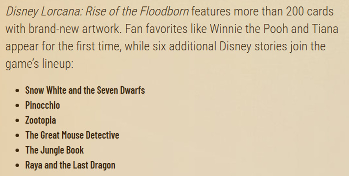 在迪士尼Lorcana最新公布的新闻中称,Lorcana第二章《洪水起源崛起》中将会推出超过200张牌,并且还有粉丝们最爱的可爱小熊以及蒂安娜,同时将会有6部新作品加入到第二章的内容中。