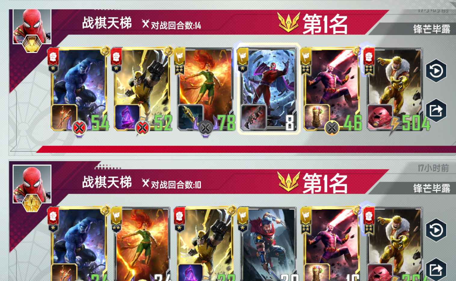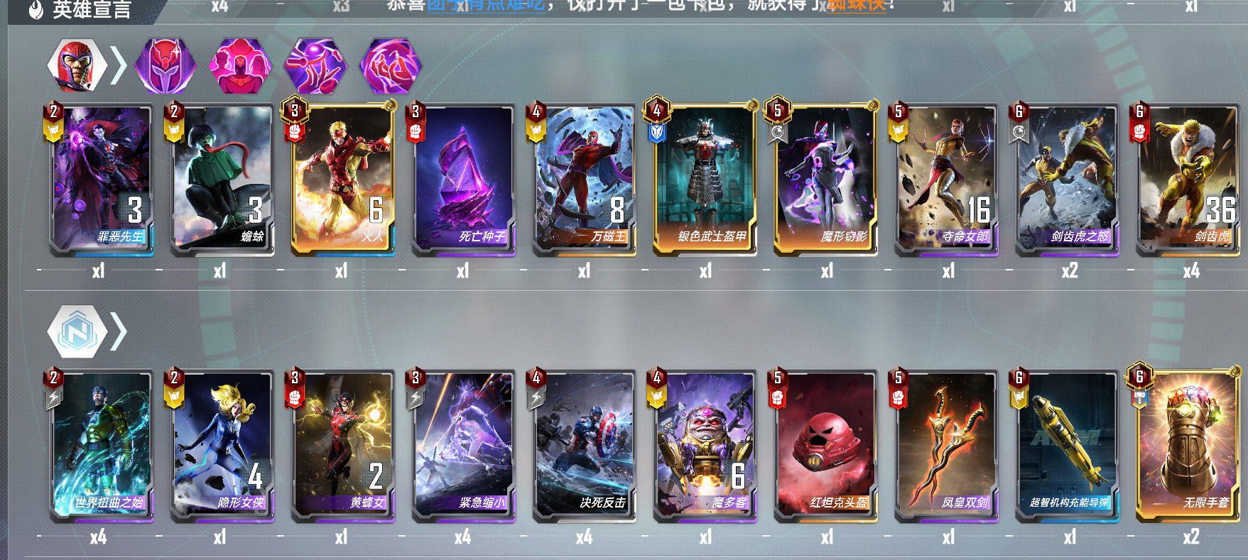 什么大成劳菲,玩得最多得责任瑟曦。复仇,灭霸。任务。皇后,谁都能打,但看双方胡卡程度