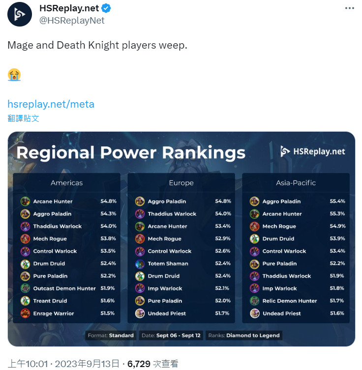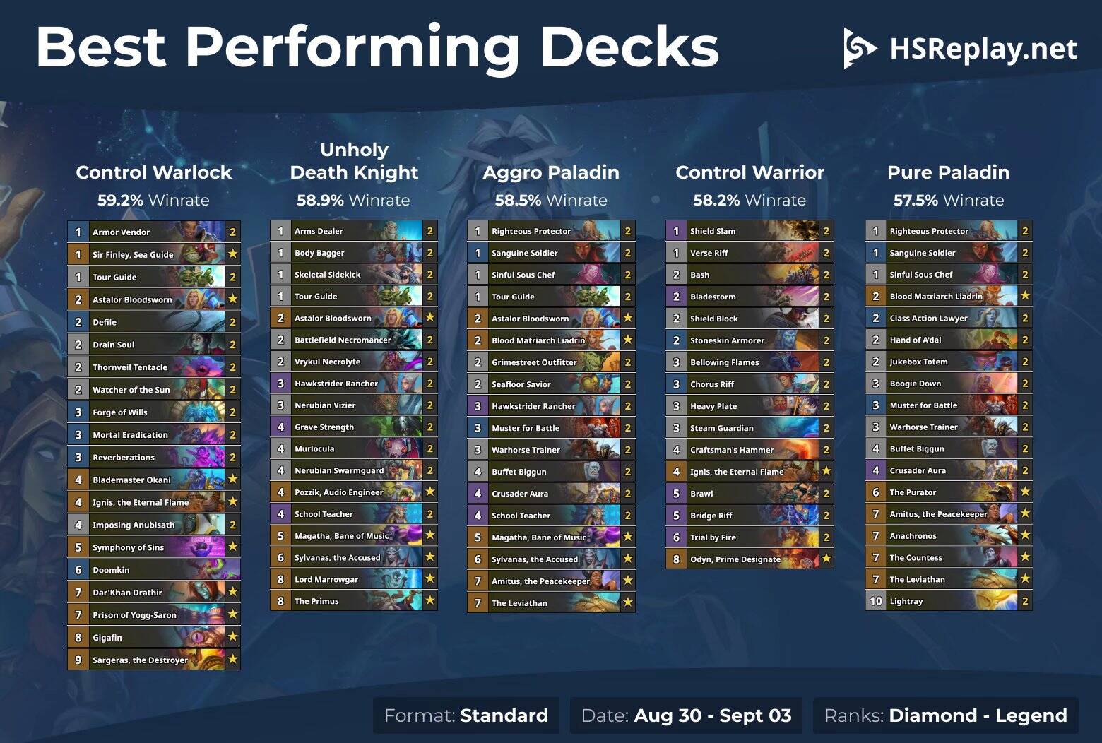 [卡组搬运] HSR 标准卡组推荐(9 月 4 日) —— 控制术 / 邪DK / 快攻骑 / 防战 / 光铸骑