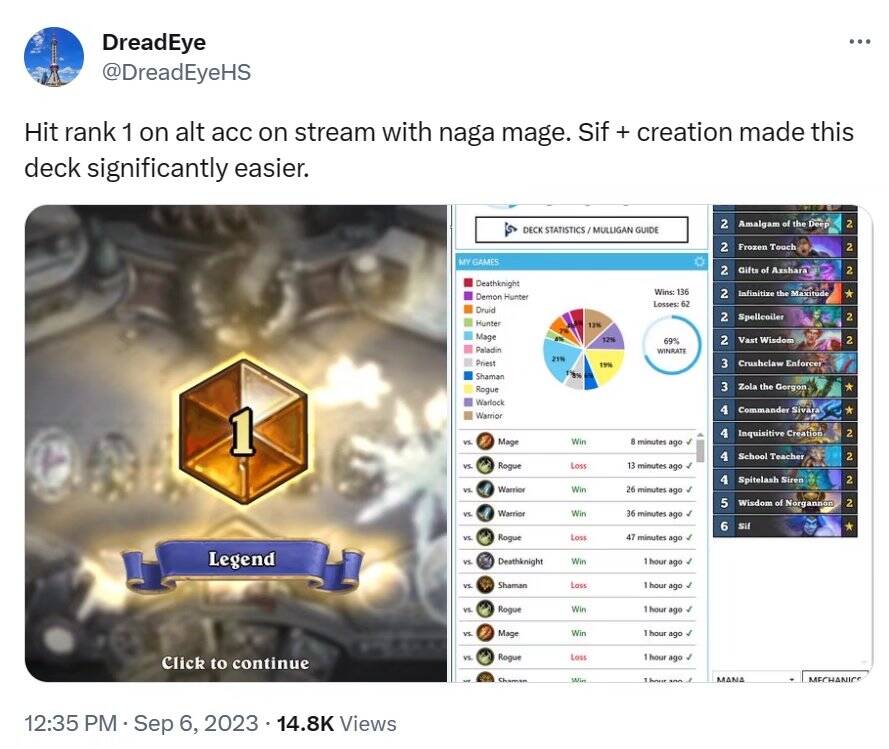 6. 如果是分享过很多次的主流卡组,优先选择战绩好且场次多、排名高的卡组进日报。但如果你有独特的见解或能做更多的补充,排名、场次且胜率理想的话也可以上来投稿
